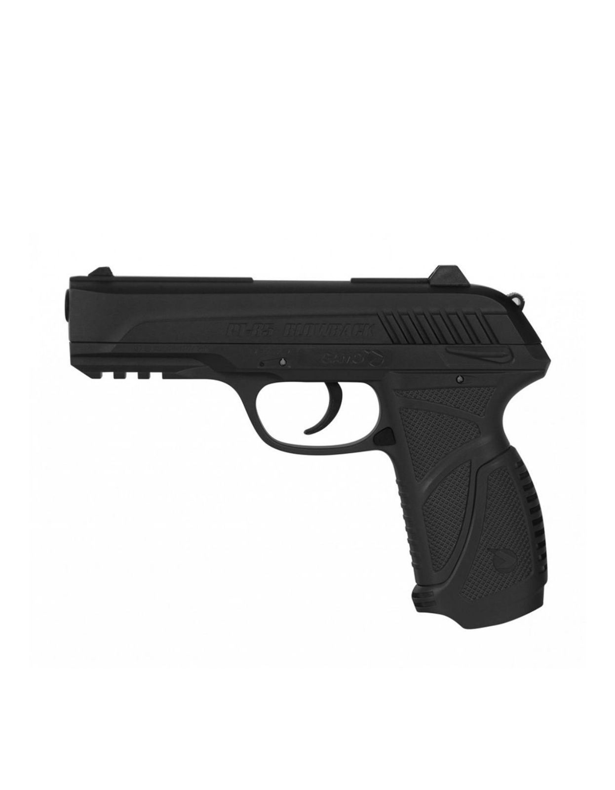 amo Pt-85 Air Pistol (Pellet) 4.5mm The PT-85 Blowback CO2 powered air pistol is featuring the innovative blowback technology. This new technique provides a realistic action and almost authentic look and a real feel when shooting. This is achieved utilising a small portion of air to move the slide backward when firing. A rifled steel barrel and textured grip are also features of this new air pistol that is capable of up to 125 m/s with Gamo’s PBA Platinum Pellets.